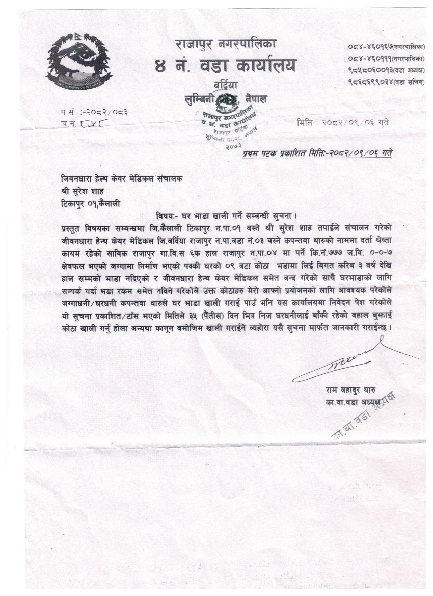 घरभाडा खाली गर्ने सम्बन्धमा ।