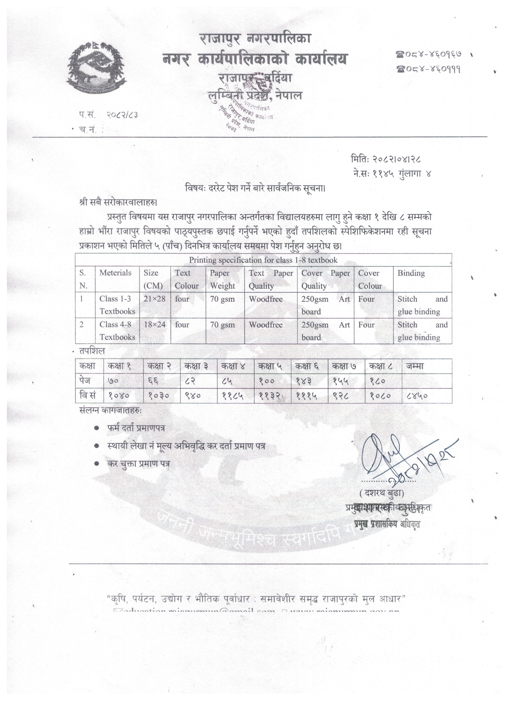 दररेट पेश गर्ने बारे सार्वजनिक सूचना ।