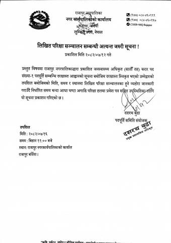 लिखित परिक्षा सञ्चालन सम्बन्धी अत्यन्त जरुरी सुचना।