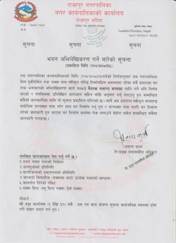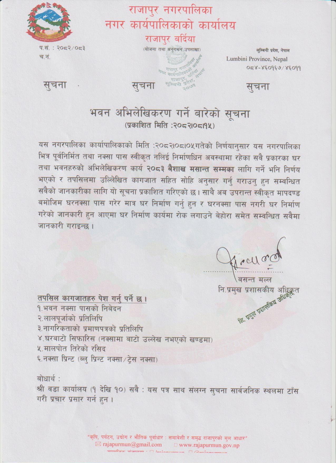 २०८३ बैसाख मसान्त सम्मका लागि भवन अभिलेखिकरण गर्ने सम्बन्धी सूचना ।