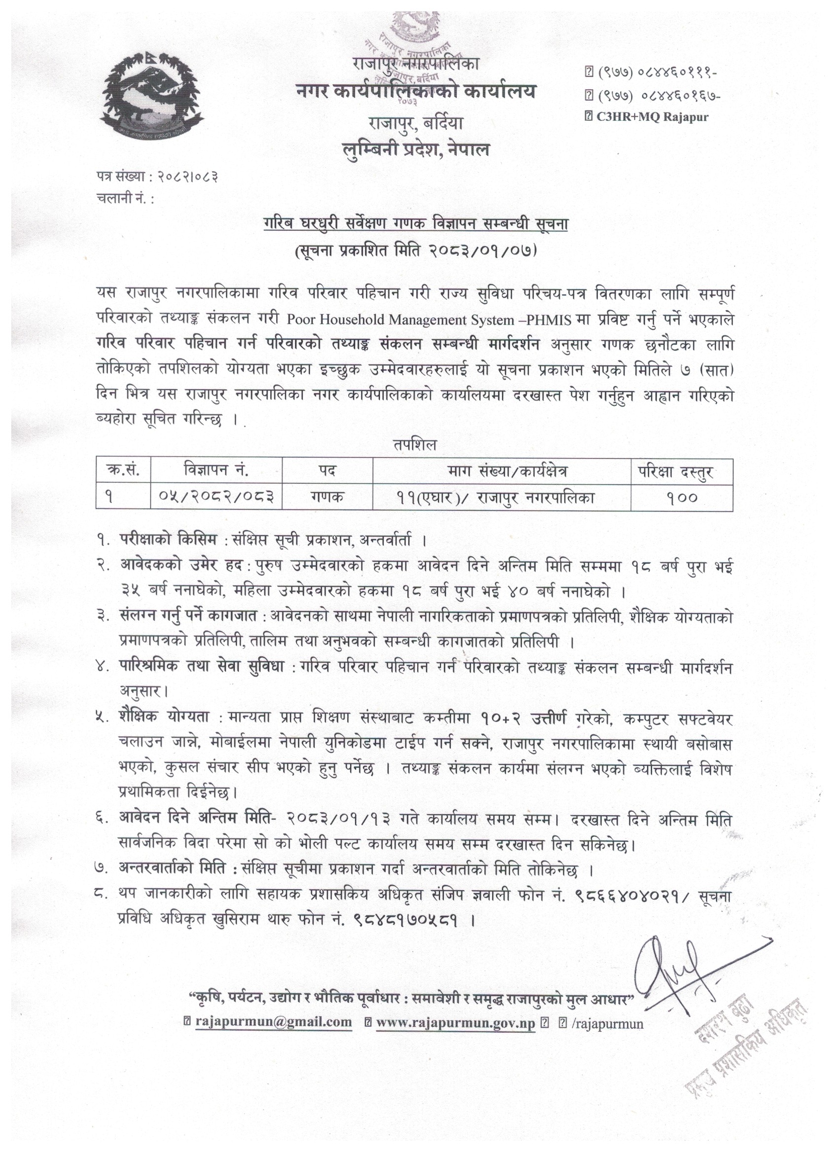 गरिब घरधुरी सर्वेक्षण गणक विज्ञापन सम्बन्धी सूचना ।