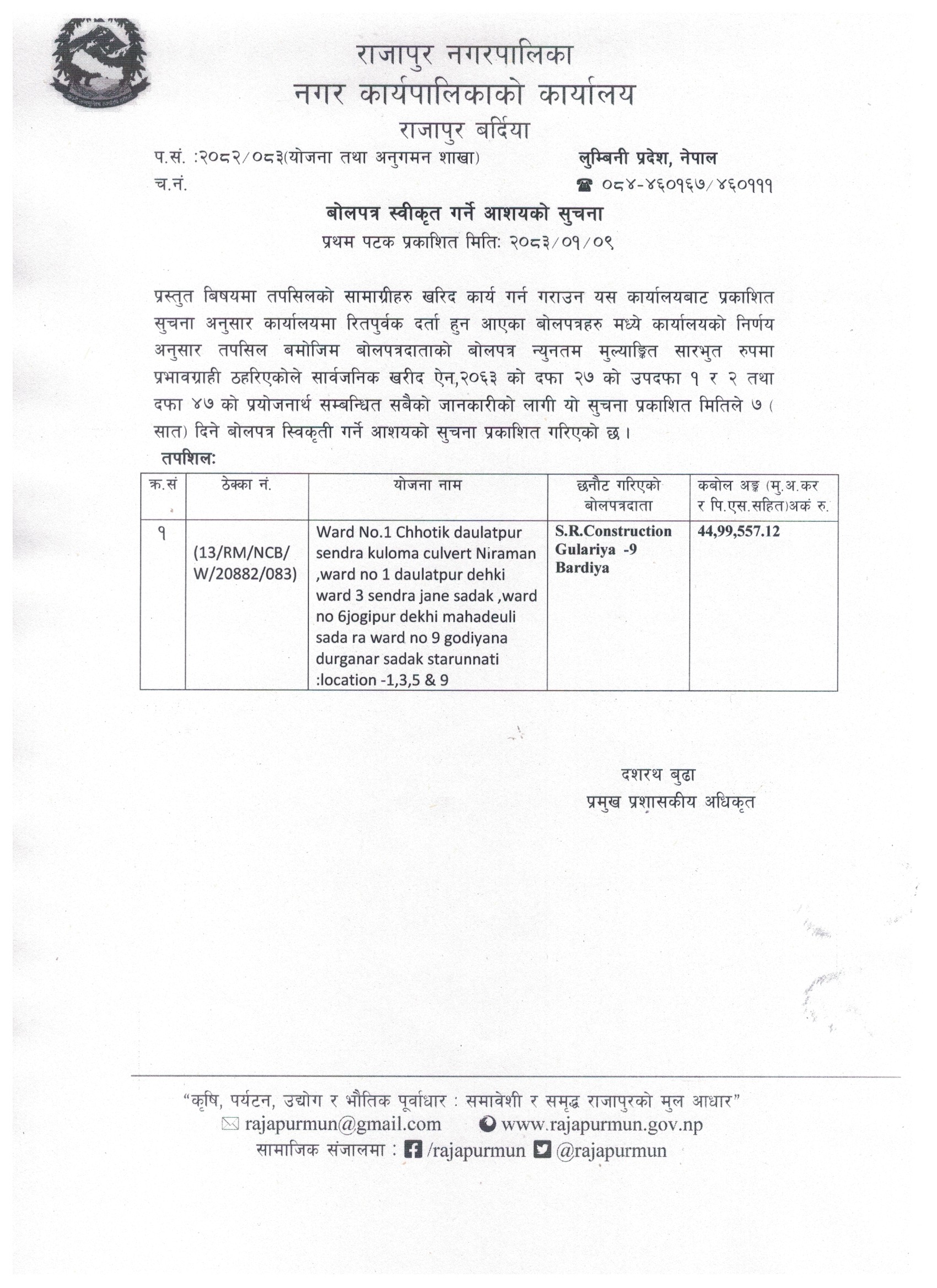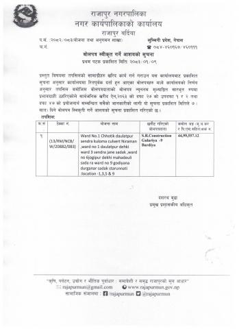 » बोलपत्र स्वीकृत गर्ने आशयको सूचना ।