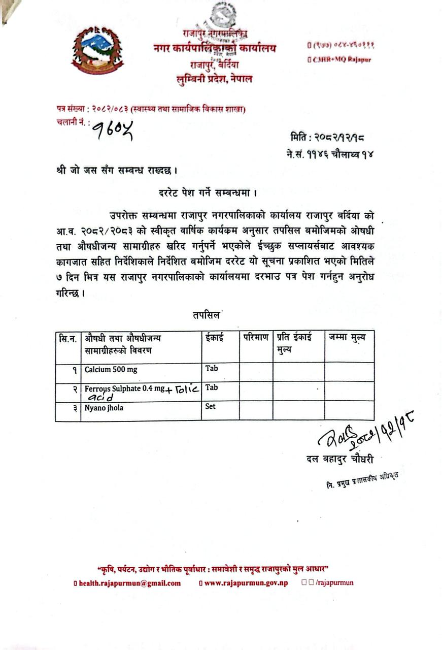 सार्वजनिक खरिद/बोलपत्र सूचना